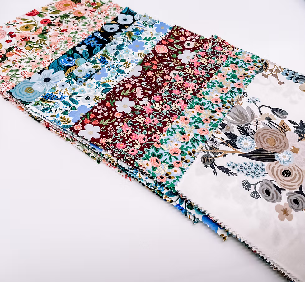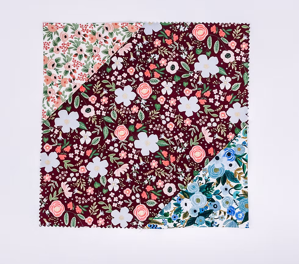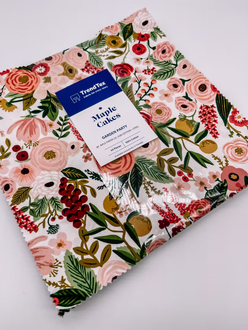 For this pattern, I used this beautiful Maple Cake Layer Cake featuring 40 various Rifle Paper Co. fabrics from their Garden Party Collection. Aren’t they amazing!?