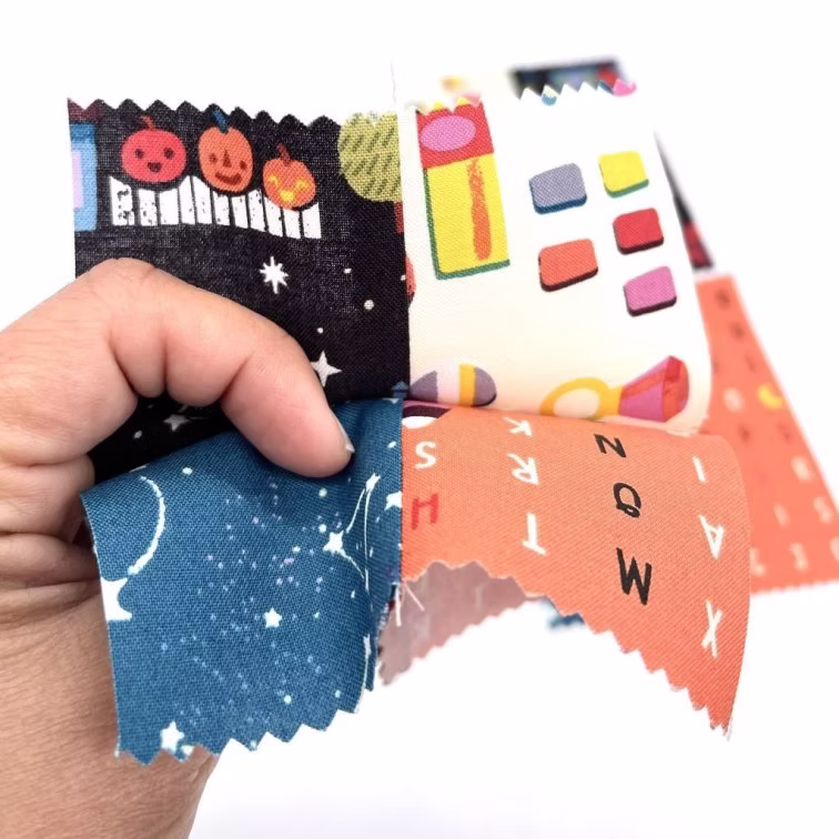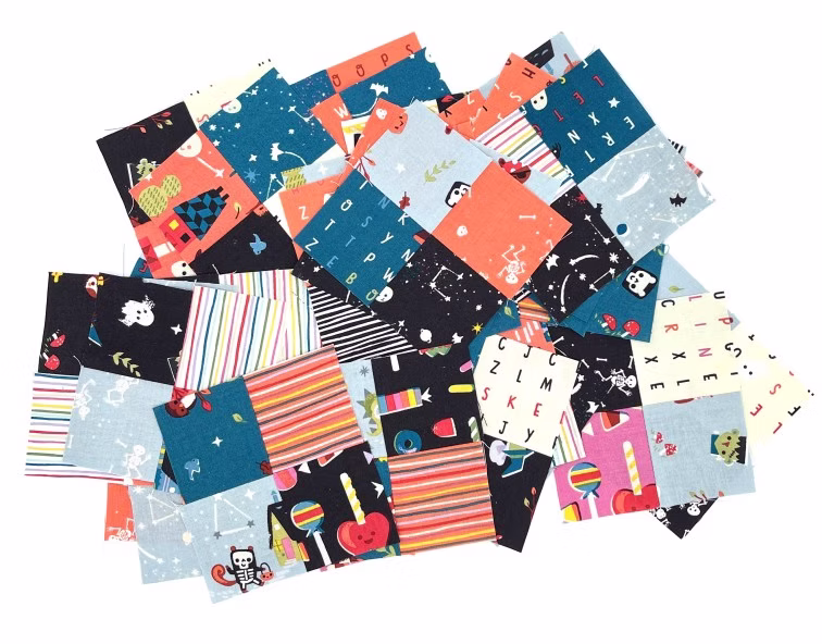 For this tutorial, I am using the “Tiny Treaters” collection from Riley Blake. The whole fabric collection is adorable, so I just couldn’t resist getting a charm pack!