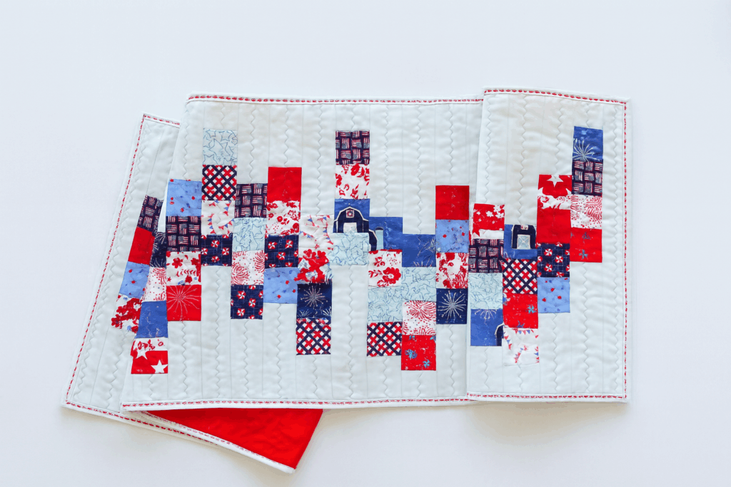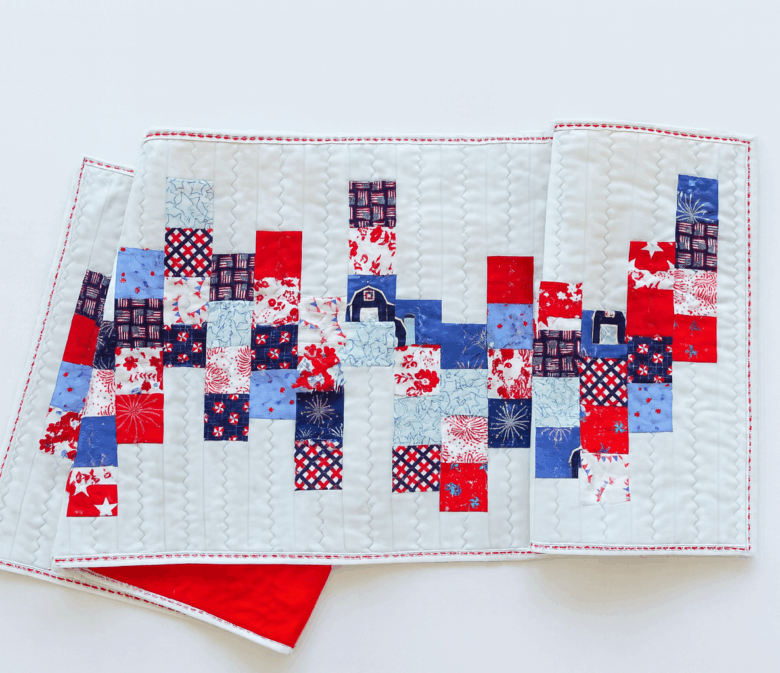 Whether you’re sewing for summer, 4th of July, or just want to bust your stash, this modern table runner pattern is easy to customize. I used a patriotic red, white, and blue color palette, but you can make it with any fabrics you love!