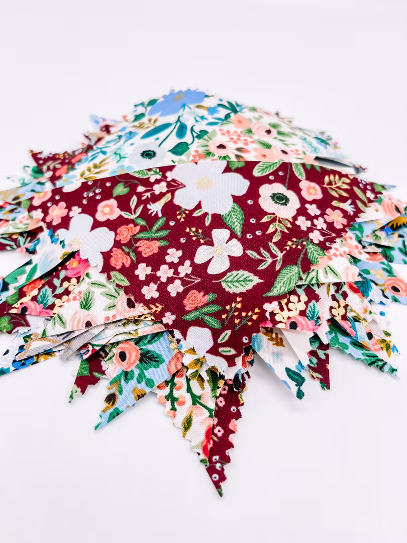 For this pattern, I used this beautiful Maple Cake Layer Cake featuring 40 various Rifle Paper Co. fabrics from their Garden Party Collection. Aren’t they amazing!?